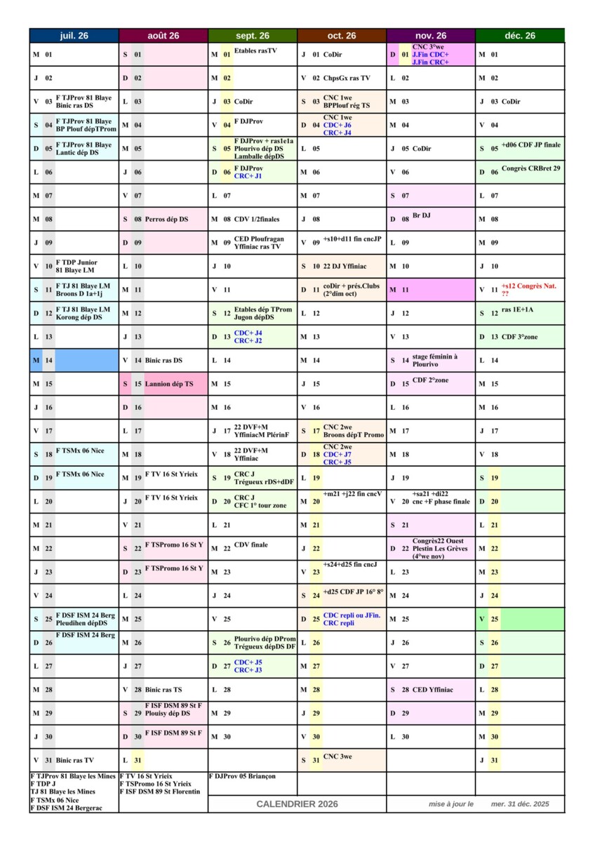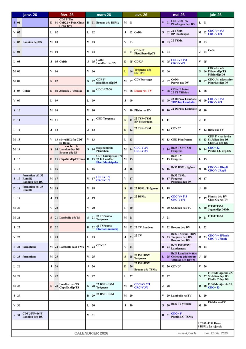 CALENDRIERS DEPARTEMENTAUX 2026 (championnats....)