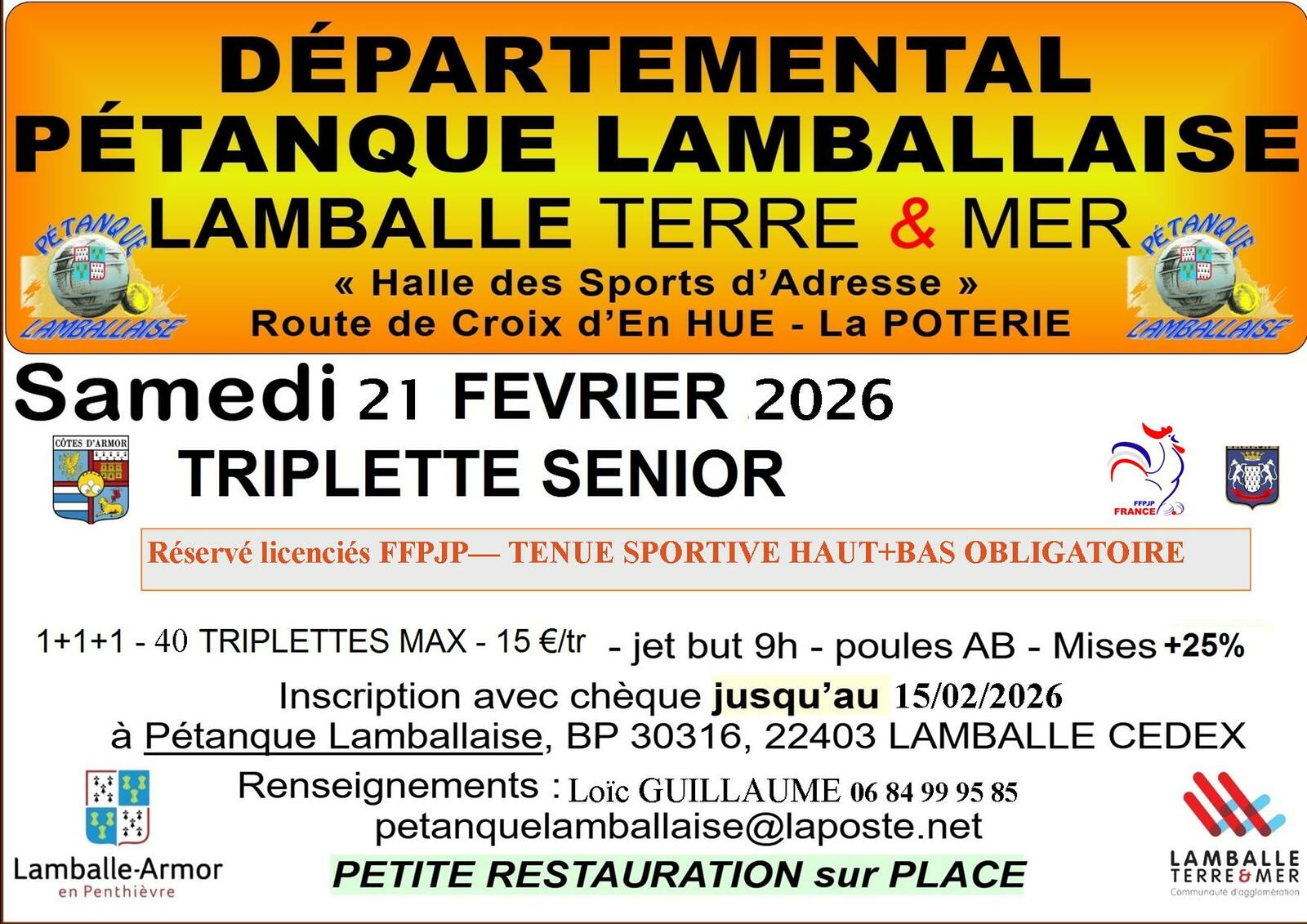 concours départemental triplette seniors le samedi 21 février, affiche des mardis vétérans.....