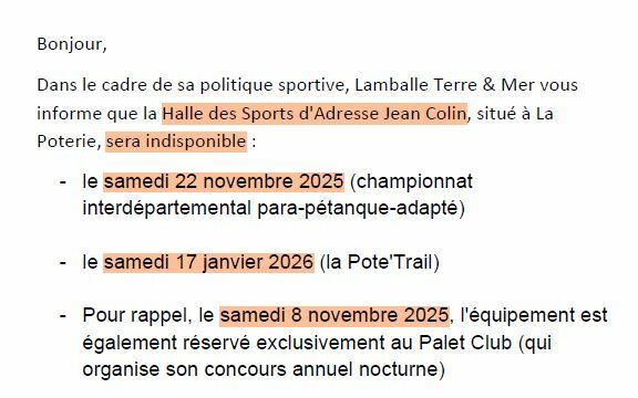 MODIFICATION PLANNING SAMEDI 8 NOVEMBRE, SAMEDI 22 NOVEMBRE ET SAMEDI 17 JANVIER 2026